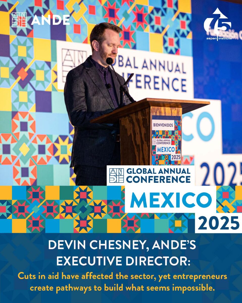 The day opened with welcoming remarks from Devin Chesney, ANDE’s executive director, who reflected on the cuts in international cooperation and the geopolitical tensions slowing the growth of many organizations. He reminded participants that entrepreneurs thrive precisely because they dare to build—against all odds—what only they can imagine.