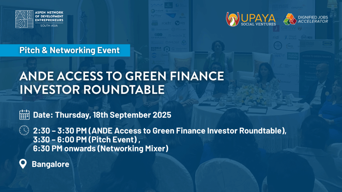 Hosted by Upaya Social Ventures in collaboration with the Aspen Network of Development Entrepreneurs (ANDE), the event brings together two initiatives – the DJA Circular Innovation Cohort 2025 and Access to Green Finance. Here’s what you can expect:
