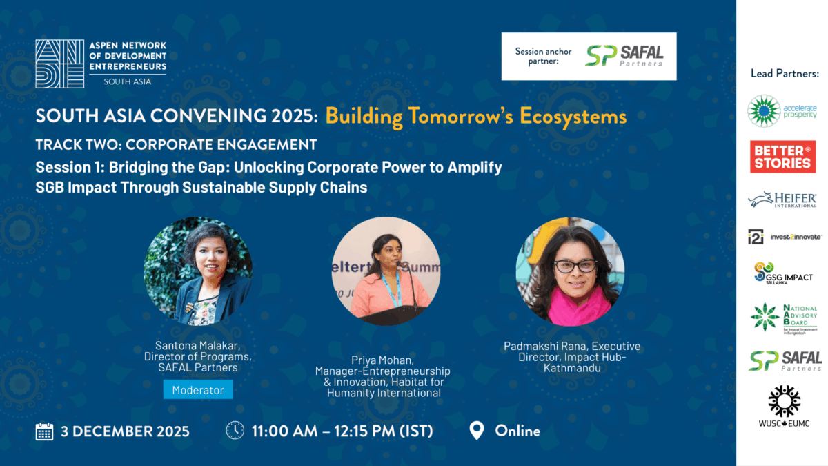 SESSION 1: Bridging the Gap: Unlocking Corporate Power to Amplify SGB Impact Through Sustainable Supply Chains (Anchored & Designed by SAFAL Partners)