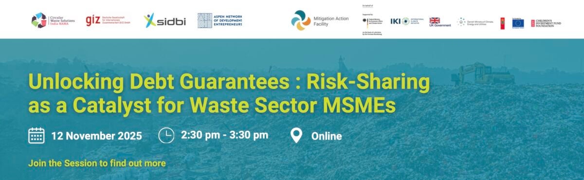 Aspen Network of Development Entrepreneurs (ANDE), GIZ together with SIDBI is facilitating an online event through the RSF to connect waste management enterprises with financial institutions. The event will bring together businesses, and financial institutions to discuss opportunities in offering loans in composting, recycling, bio-methanation, RDF, and material recovery technologies (PAN India). By creating space for direct interactions, the aim is to build partnerships, open access to finance new and existing projects, and explore the untapped potential of India’s circular economy.
