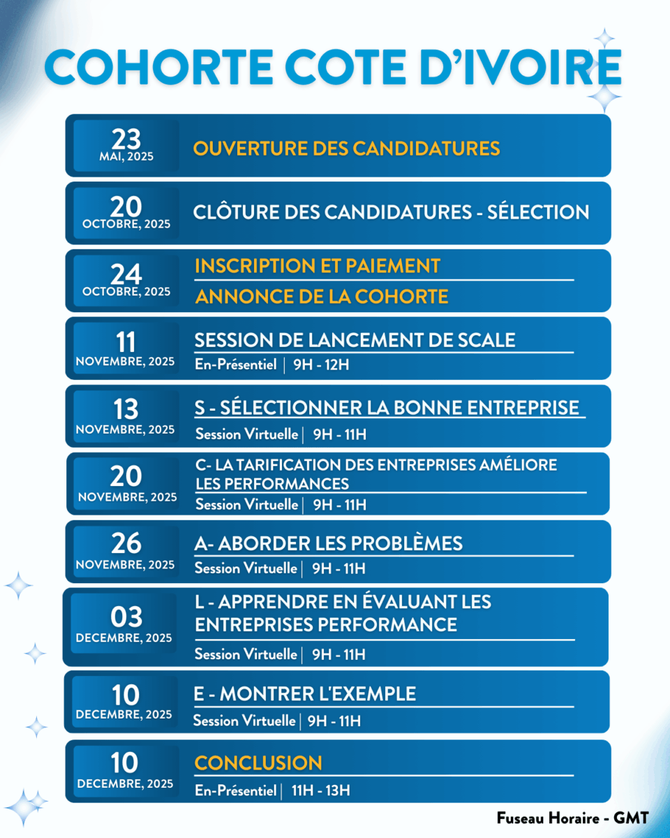 Seuls les membres de la cohorte de Côte d’Ivoire sélectionnés devront effectuer le paiement avant le 04 Septembre 2025.