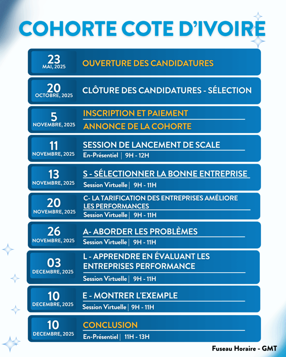 Seuls les membres de la cohorte de Côte d’Ivoire sélectionnés devront effectuer le paiement avant le 5 Novembre 2025.